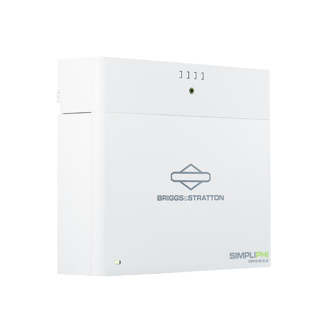 Briggs & Stratton Energy - SimpliPHI 6.6 Battery: 6.65kWh, 48V STACKABLE - 10 Year Warranty. Includes (1) Wall Mount Bracket which can be used with either Base option SOLD SEPERATELY. All Briggs & Stratton Energy Battery System MUST include: (1) BSE-SPHI-BATT-CONTROLLER (1) BSE-ET-GATEWAY And (1) Battery Base (choose either): ...Floor Mount - BSE-SPHI-6.6-FLRMNT-BASE or ...Wall Mount - BSE-SPHI-6.6-WALLMNT-BASE